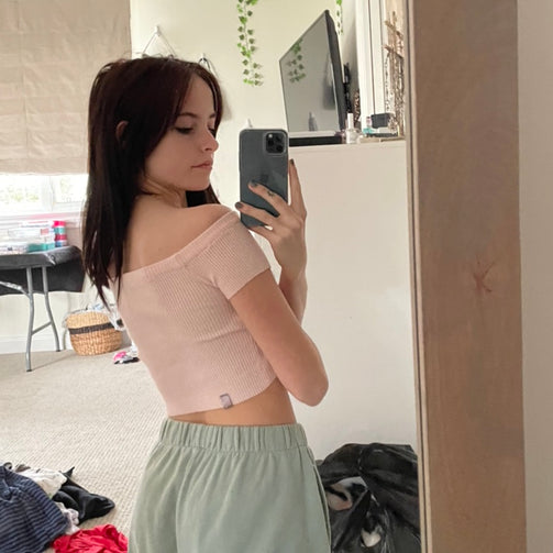 Pink knit off the shoulder top